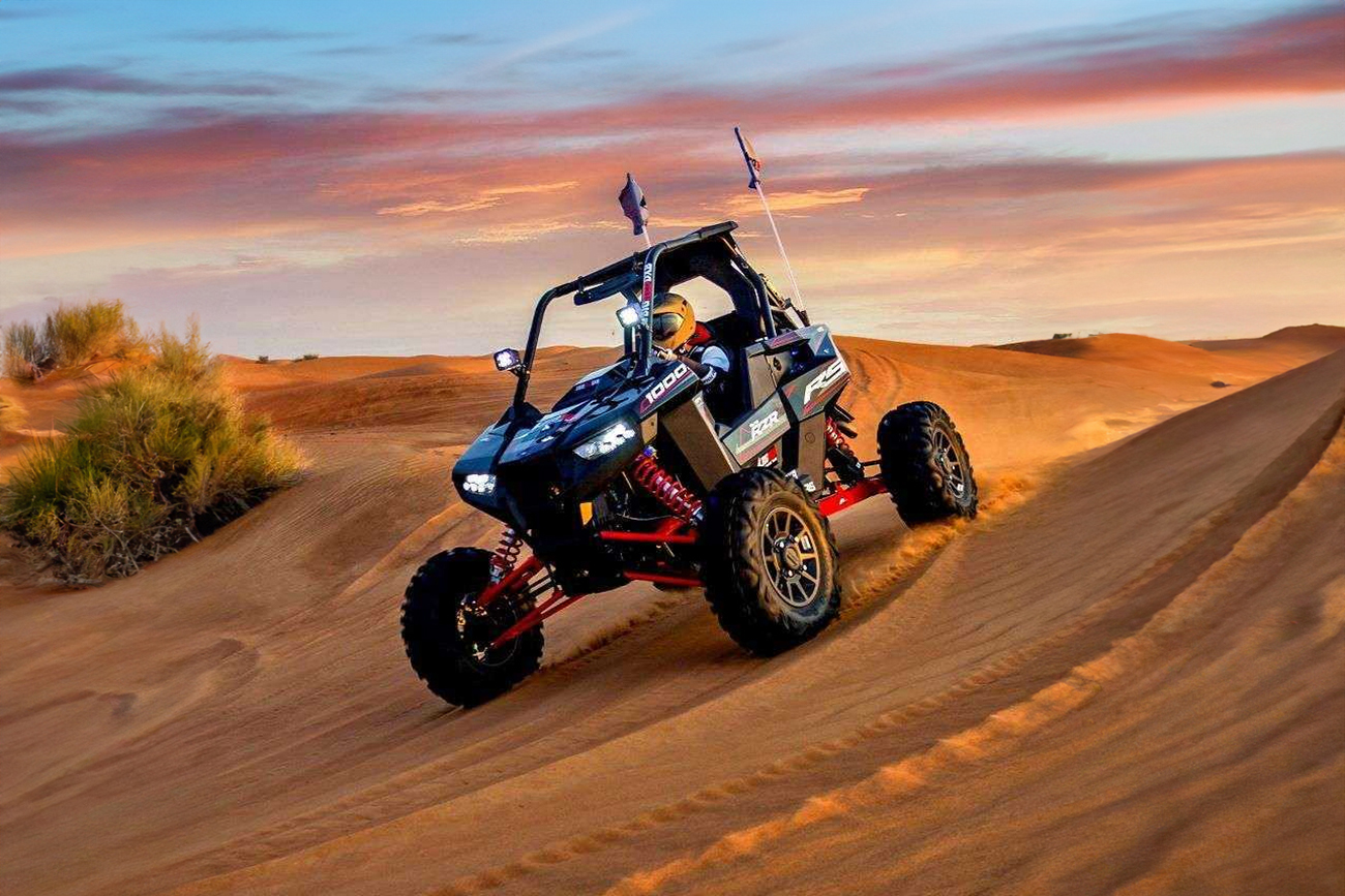 Take a quick break to snap some unforgettable shots of you and your buggy against Dubai’s dramatic desert backdrop.